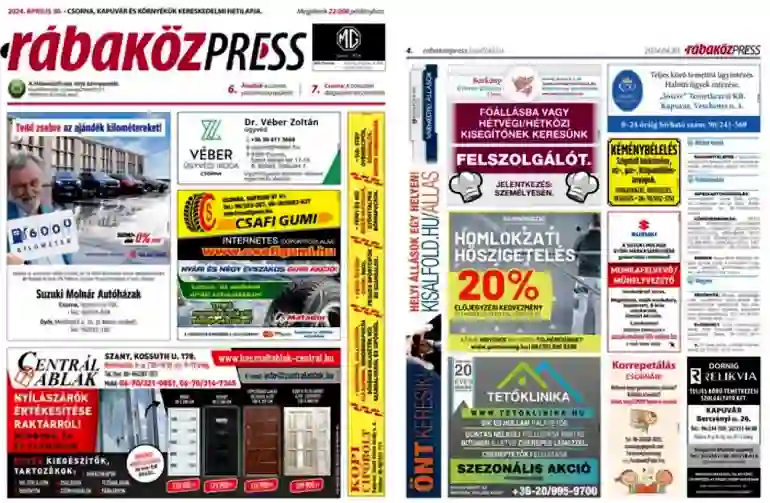 A RábaközPress hirdetési hetilap az alábbi településeken jelenik meg: Csorna (10.000 fős lakosságnak) , Kapuvár, Vitnyéd, Babót, Beled, Szany, Mihályi, Kóny, Barbacs, Bágyogszovát, Bogyoszló, Bősárkány, Farád, Kisfalud, Osli, Rábapordány, Rábatamási, Szárföld, Szil, Vadosfa, Veszkény, Jobaháza, Rábacsanak, Sopronnémeti, Szilsárkány, Egyed, Fertőd, Süttör, Petőháza, Fertőszentmiklós, A/4 méretben 8-16 oldalon ingyenesen.