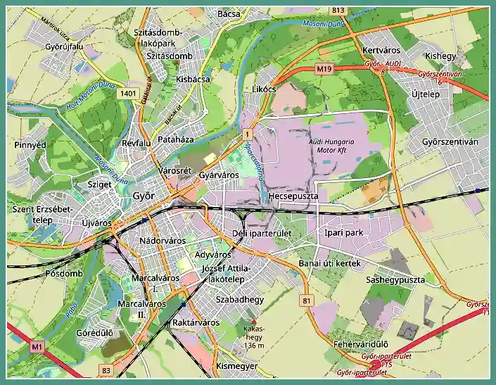 1847-ben a reformországgyűlésre Moson megye egyik követévé gróf Széchenyi Istvánt választották. 1855-ben indult meg a vasúti közlekedés Győr és Bruck között. 1913-ban itt kezdték építeni a monarchia nagy fegyvergyárát, amelyet a trianoni béke után leszereltek és nagyrészt megsemmisítettek. Hatalmas közművesített területén 1923-ban kezdte meg működését az ország első műselyemgyára, 1934-ben az ország első timföldgyára.