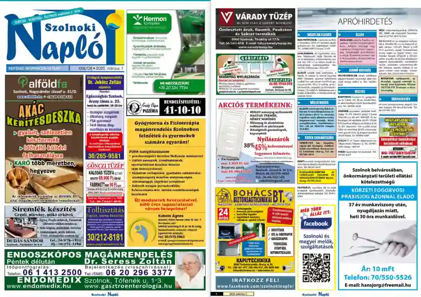 Terjesztett példány: 2025. második félév – kéthetente 9.000 db